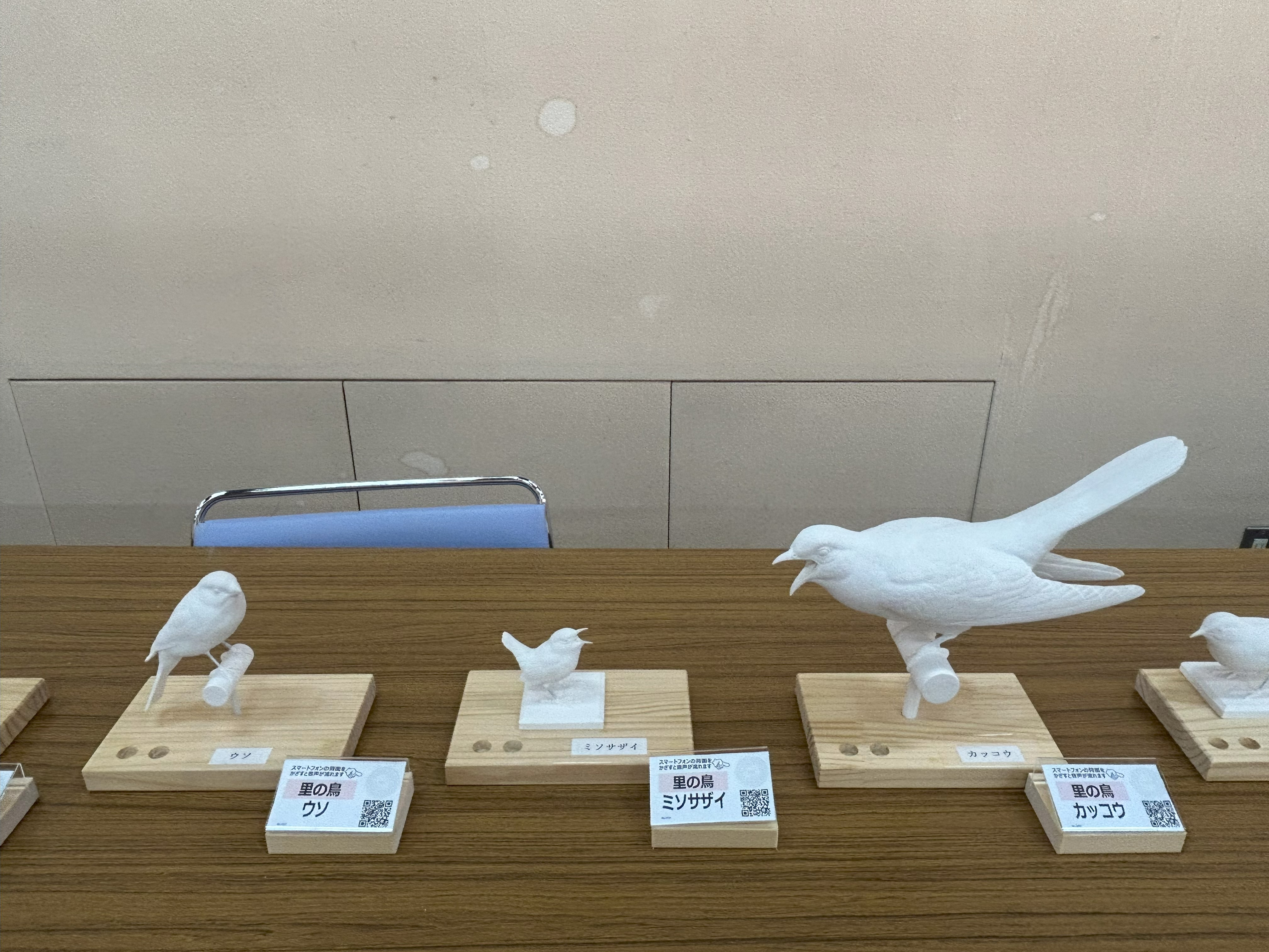 内山春雄先生作品 ヤイロチョウ ![]() 彩色実演 ![]() タッチカービング ネームプレートのタグかQRコードを各自のスマホで読み取って、鳥の鳴き声と説明が聞ける新技術が組み込まれました。 ![]() ![]() |